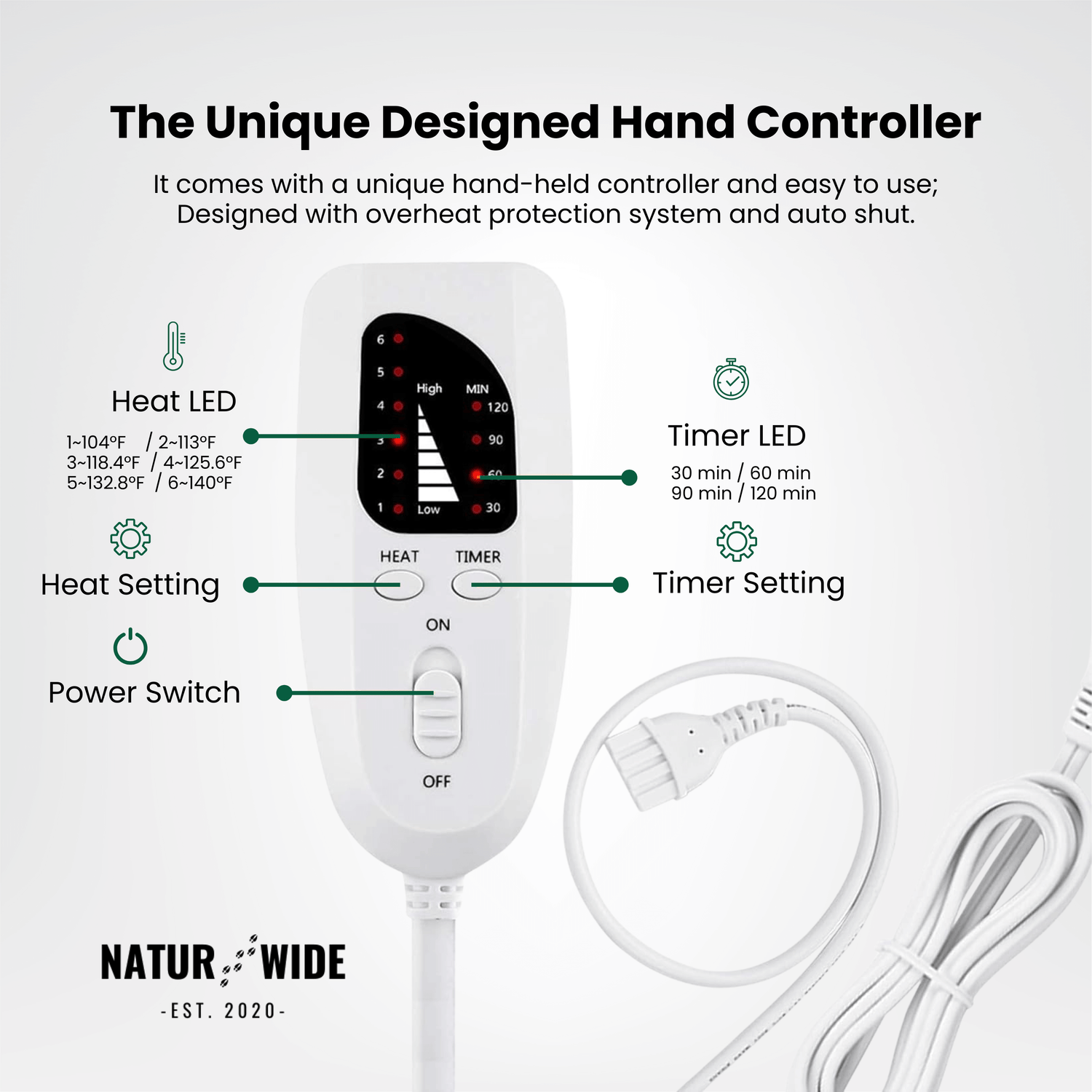 The advanced heating wire is evenly distributed across the pad, providing rapid heat-up times and a balanced temperature that eliminates cold spots.
