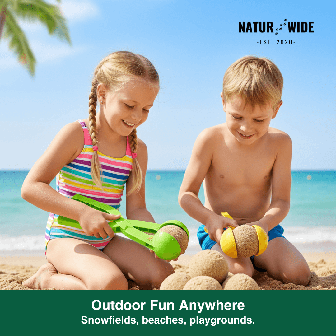 But the fun doesn't end in winter! Take the Snowball Maker to the beach or sandbox in the summer. It works excellently with wet sand to form perfect sand balls. A simple yet brilliant tool that encourages children to play outside in nature.