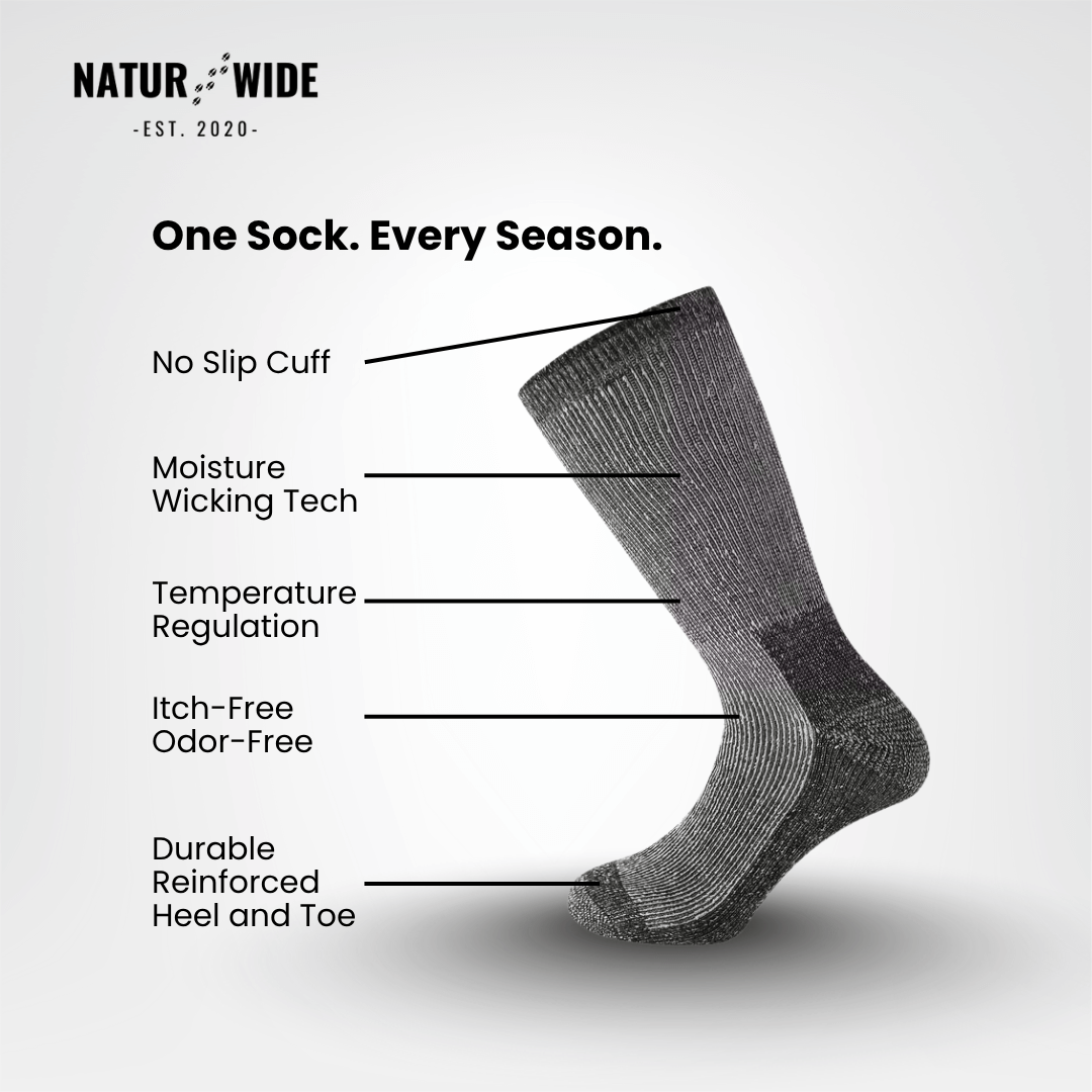 The natural fibers regulate temperature and reduce odor buildup, keeping your feet fresh and dry all day long.
