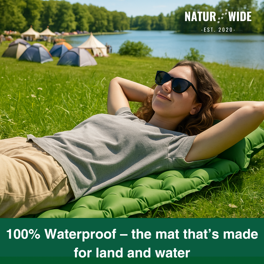 Whether at the lake, at a festival, or out in nature – with the waterproof Naturwide sleeping pad , you'll always stay dry and comfortable. The durable surface resists damp ground and guarantees relaxing hours under the open sky – perfect for real summer adventures